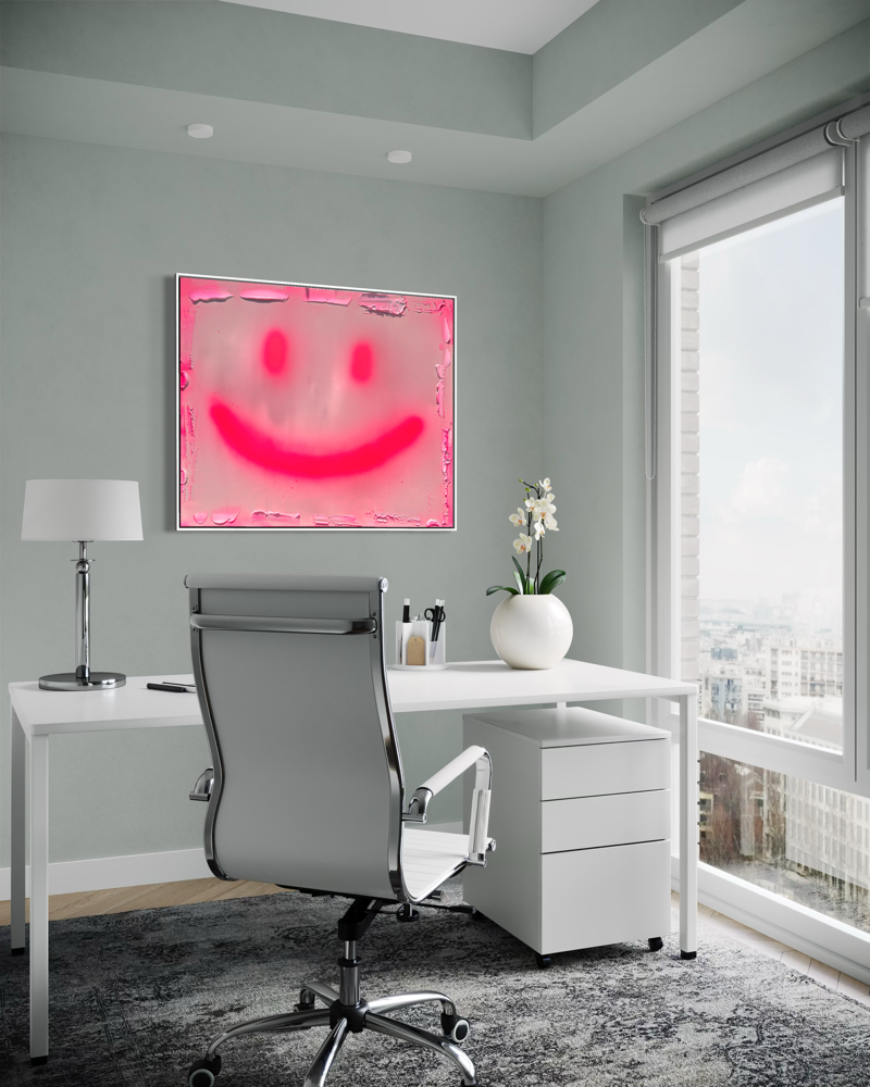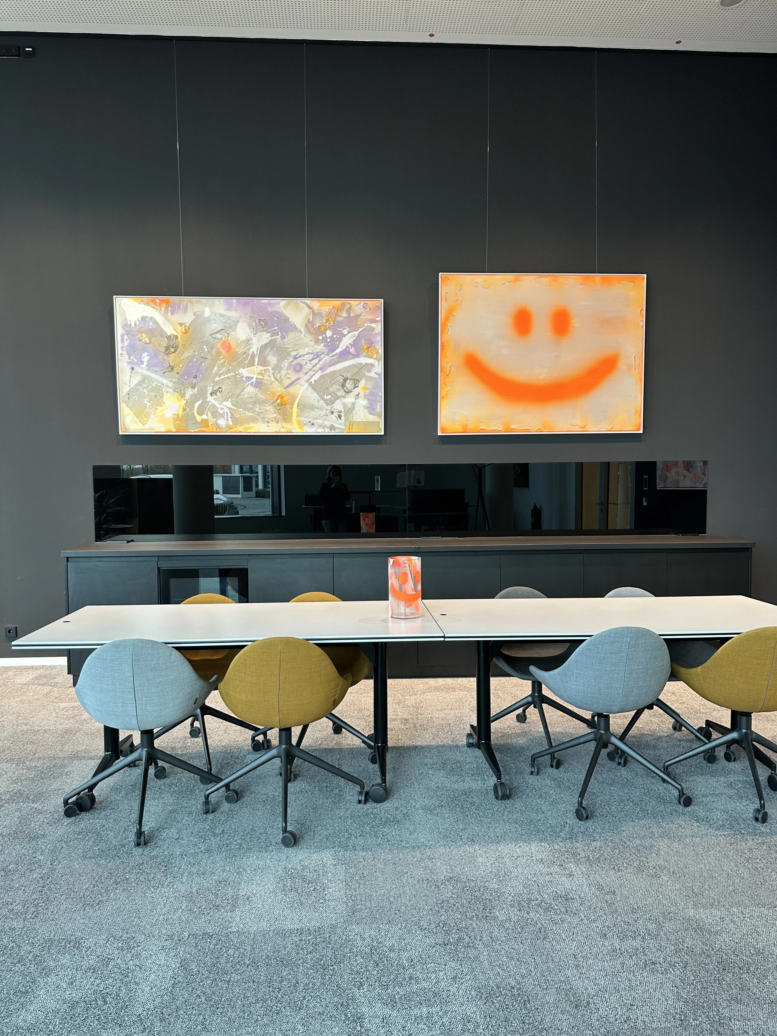 Mehrere Werke die zusammen wirken – für Wartezimmer, Flure, Besprechungsräume oder Empfangsbereiche. Ein leuchtender Smiley am Empfang macht vom ersten Moment an gute Laune – bei Patienten genauso wie bei Mitarbeitern. Ich entwickle stimmige Konzepte die eure Corporate Identity aufgreifen, ohne sie zu kopieren.